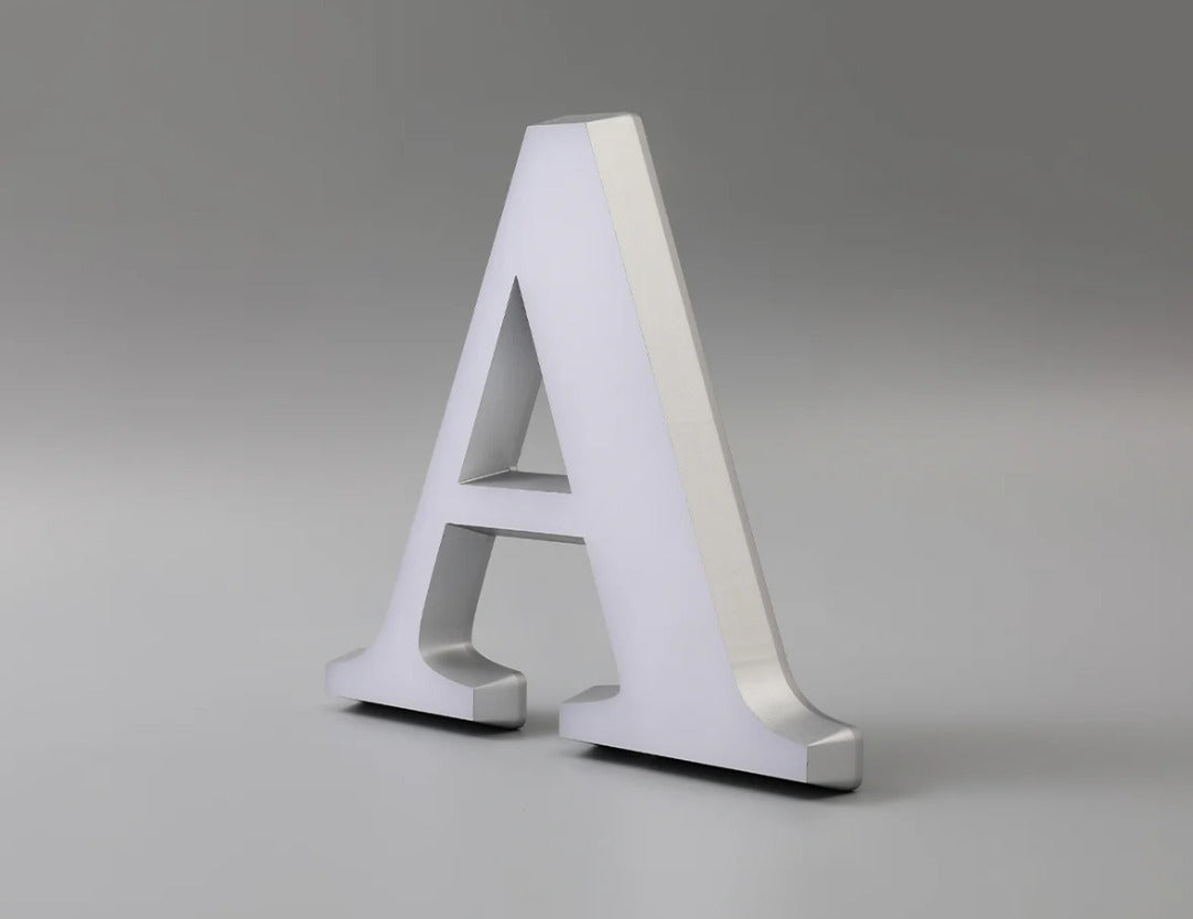 Letra corpórea fabricada en metacrilato 100%, con iluminación frontal.